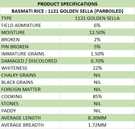 BASMATI RICE : 1121 GOLDEN SELLA (PARBOILED)