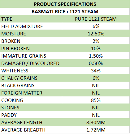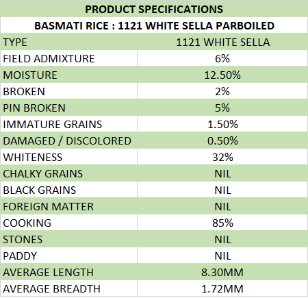 BASMATI RICE : 1121 WHITE SELLA PARBOILED