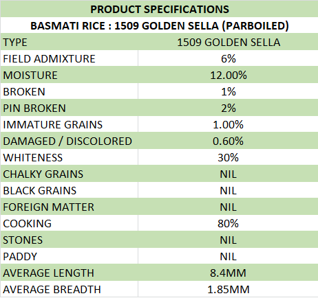 BASMATI RICE : 1509 GOLDEN SELLA (PARBOILED)