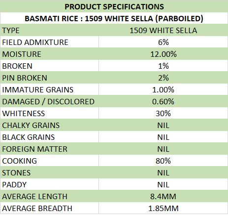 BASMATI RICE : 1509 WHITE SELLA (PARBOILED)