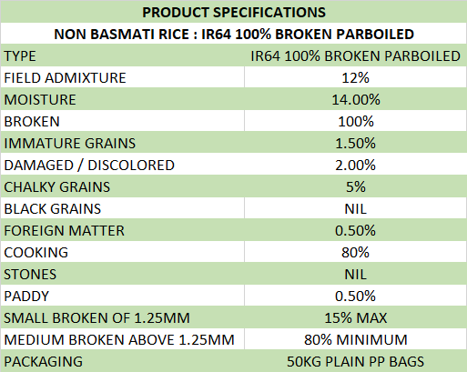 NON BASMATI RICE : IR64 100% BROKEN PARBOILED