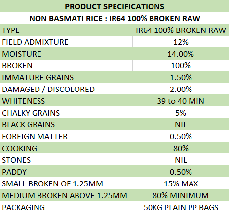 NON BASMATI RICE : IR64 100% BROKEN RAW