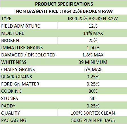 NON BASMATI RICE : IR64 25% BROKEN RAW