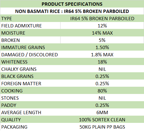 NON BASMATI RICE : IR64 5% BROKEN PARBOILED