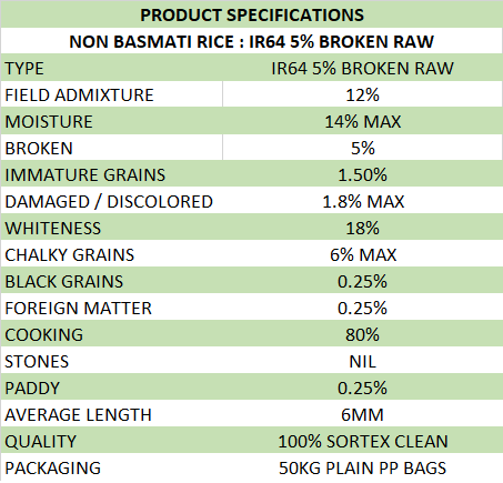 NON BASMATI RICE : IR64 5% BROKEN RAW
