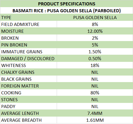 BASMATI RICE : PUSA GOLDEN SELLA (PARBOILED)