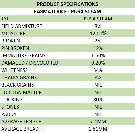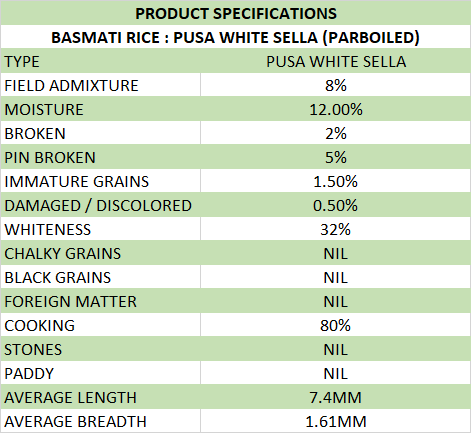 BASMATI RICE : PUSA WHITE SELLA (PARBOILED)