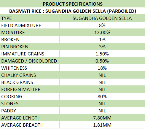 BASMATI RICE : SUGANDHA GOLDEN SELLA (PARBOILED)