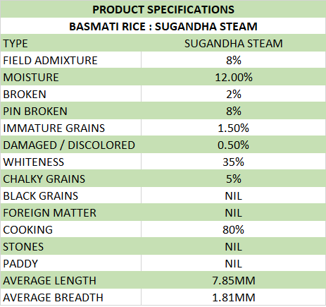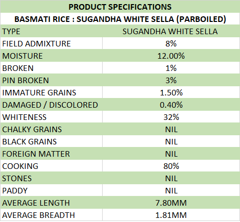 BASMATI RICE : SUGANDHA WHITE SELLA (PARBOILED)
